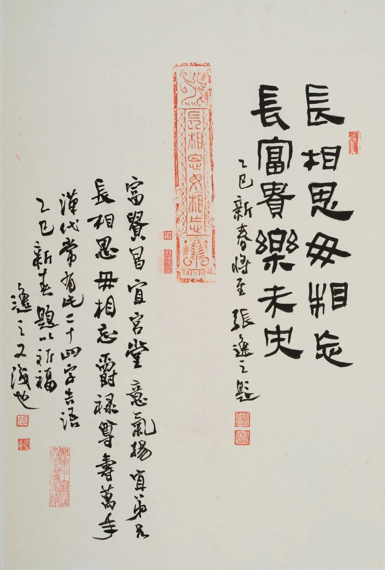 张逸之是我山大的师兄 ,为人热情豪爽,学识渊博,作为青岛书协的副主席,他书法创作诸体精通,多次参加国展,尤擅行、草、篆书。出身哲学系的他,还写得一手好文章,在书协组织的一些大型活动上,经常执笔成书,为青岛书法的宣传做出了很大的贡献。书法以外,逸之兄在水墨和篆刻上也多有成就,除了传统水墨,近年来其也在积极探索当代水墨艺术,将当代艺术和水墨融合,写画出自己的艺术符号。繁忙之余,逸之兄也一直在捉刀刻石,孜孜不倦以求精进,始终把书画印艺术作为自己毕生的追求。这次展览和逸之兄策划两年有余,从甲辰到丙午开岁,逸之兄用四十余幅作品给大家做了精彩呈现,这里面既有汉砖、佛造像等拓片题跋,也有专为马年书写的嘉言吉语,还有探索当代水墨的青花瓷瓶等等,展览现场晓芳斋还陈设有当代精品家具、沉香、瓷器等,希望诸位师友从展览中获得自己的精神愉悦,享受一段充满艺术气息的新春时光。(文/刘杨)
