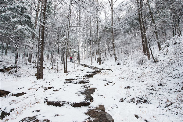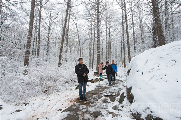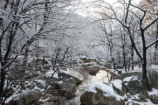 12月2日,雪后初霁,在崂山北九水,山谷间仍有溪流在流淌,落叶后的树枝裹着薄薄的雪,造型各异引人遐想。在通往蔚竹庵的山路两边,难得一见的雾凇美景更是让游人们兴奋不已。