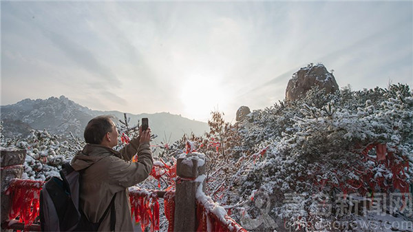周六的青岛,郊外的崂山巨峰之上,雪花飘了一整天。银装素裹的崂山,与景色和气象仿佛还停留在秋天的市区形成鲜明对照,更显仙山境界。下面是青岛新闻网摄影师在周六中午拍摄的一组雪中崂山壮美画面。