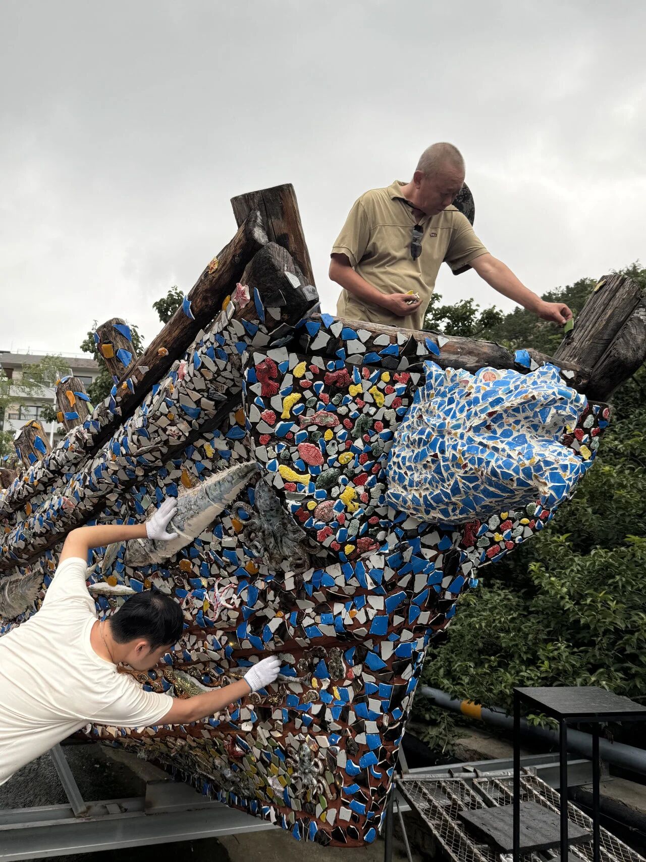 由此诞生的,是一座泊在时光海岸的精神灯塔。它象征着渔村世代勤劳的汗水、对山海的敬畏、以及生生不息的坚韧。它是一座无可替代的文化地标,坚定地锚定于生养它的土地,成为连接过往荣光与未来憧憬的永恒航标。它独特的艺术语言——源于大地窑火的陶瓷与映照山海灵光的琉璃,经由艺术家凝练哲思与镶嵌赋彩的智慧表达,实现了个体艺术生命向集体文化生命的汇流,构筑出震撼人心的视觉诗篇。